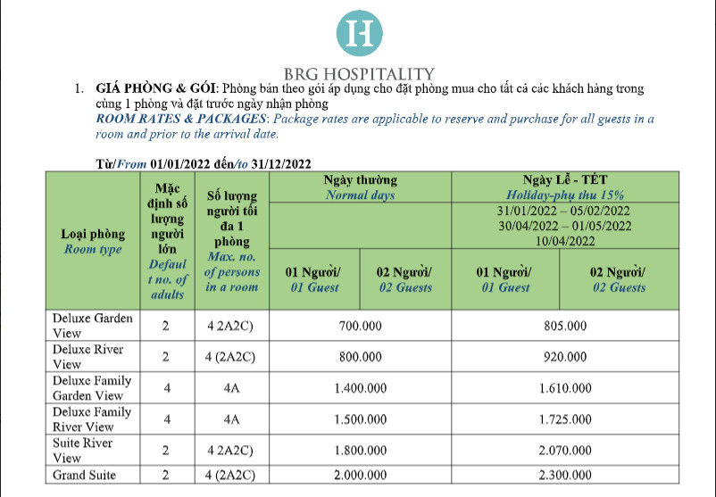 Bảng giá hợp đồng 2022: